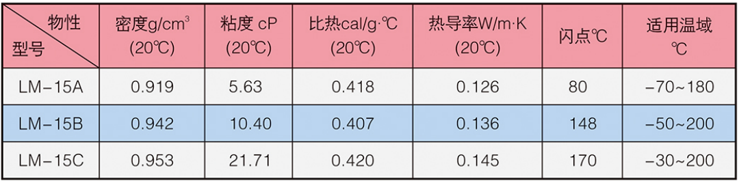 LM-15系列冰河冷媒由聚硅氧烷改性而成。外觀為無色或淺色液體,不溶于水。具有生理惰性、良好的化學穩(wěn)定性、凝固點低、使用壽命長等特點,對以金屬為代表的眾多材料,幾乎不會產生不良的影響,可應用于醫(yī)藥、化工、新能源等領域的制冷系統(tǒng)。